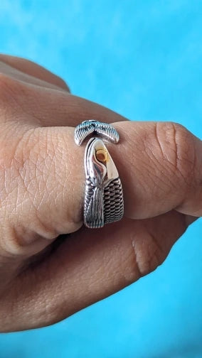 A symbol of freedom, movement, and quiet strength. Handcrafted in 925 sterling silver, this flowing fish-shaped ring is made for those who carry depth beneath the surface.